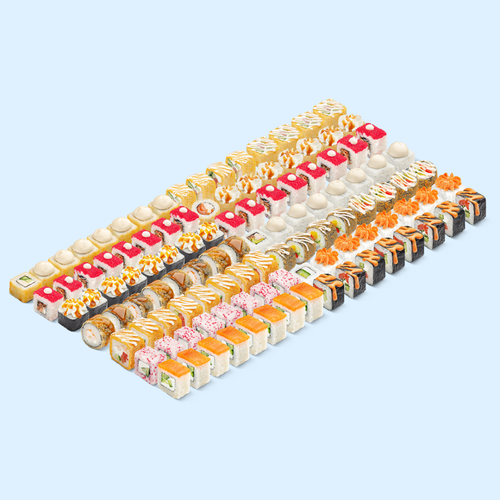 Искра между вами запылает с новой силой. Как добавить огня: понадобятся яркий манго-чили, благородный трюфель и немного лемонграсса. Раздели со второй половинкой роллы со вкусами, которые вызовут экзотический экстаз. Состав: Лосось с тобико и трюфельным соусом Х2, Филадельфия темпура с соусом лемонграсс, Цезарь, Веджи спайс с соусом манго-чили, Сяке кунсей маки, Филадельфия лайт, Каваи, Цезарь BIG с трюфельным соусом, Эби темпура с соусом лемонграсс, Краб терияки с соусом манго-чили, Цезарь темпура, Тортилья с курицей и трюфельным соусом, Яссай спайс с трюфельным соусом