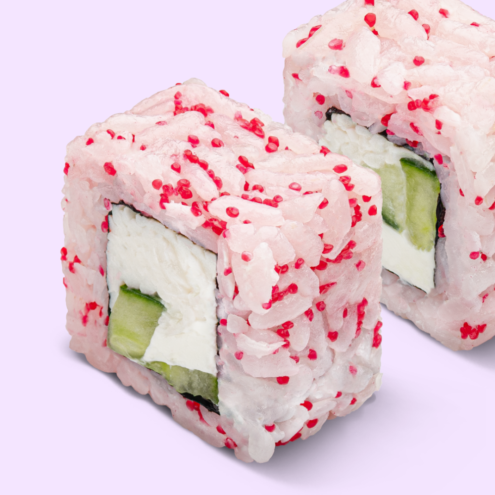 Рис, мицукан, сахар, комбу, соль, нори, тобико, сыр сливочный, огурец, снежный краб, майонез, соус спайс