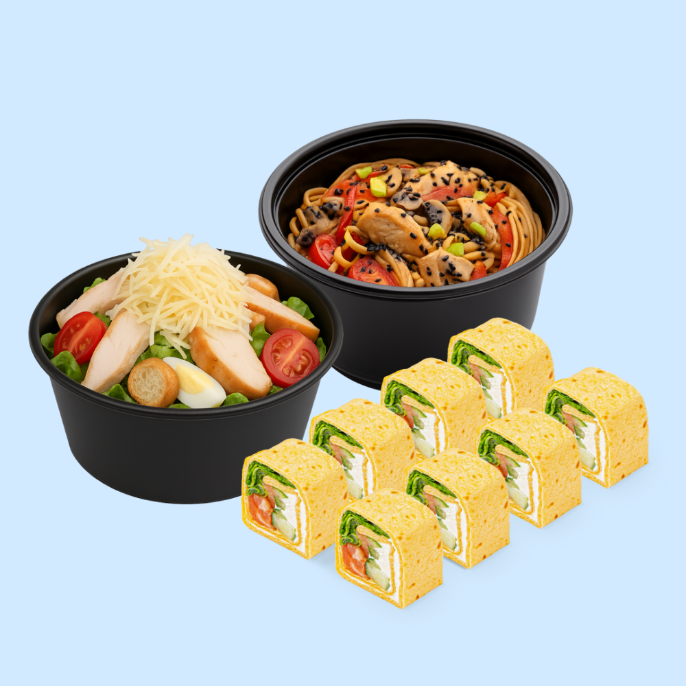 Тори Пасута, Цезарь с курицей, Тортилья овощная.