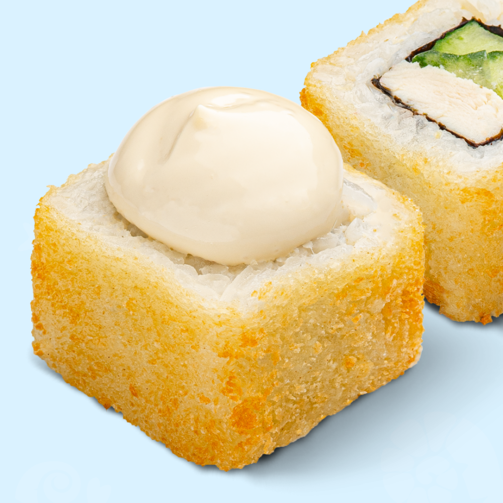 Рис, мицукан, сахар, комбу, соль, нори, сыр сливочный, филе куриное, приправа для курицы, огурец, майонез, чеснок, соевый соус, огурец консервированный, мука, яйцо, сухари панировочные
